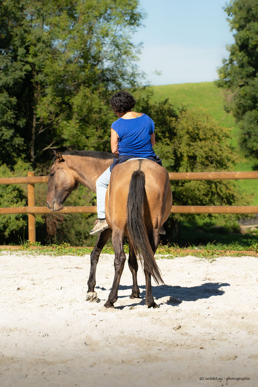 Mon rôle est de vous proposer une approche consciente et respectueuse du Cheval (et non d’enseigner l’équitation). Le travail monté ne sera donc réalisé que si vous êtes autonome aux 3 allures. Merci de votre compréhension.